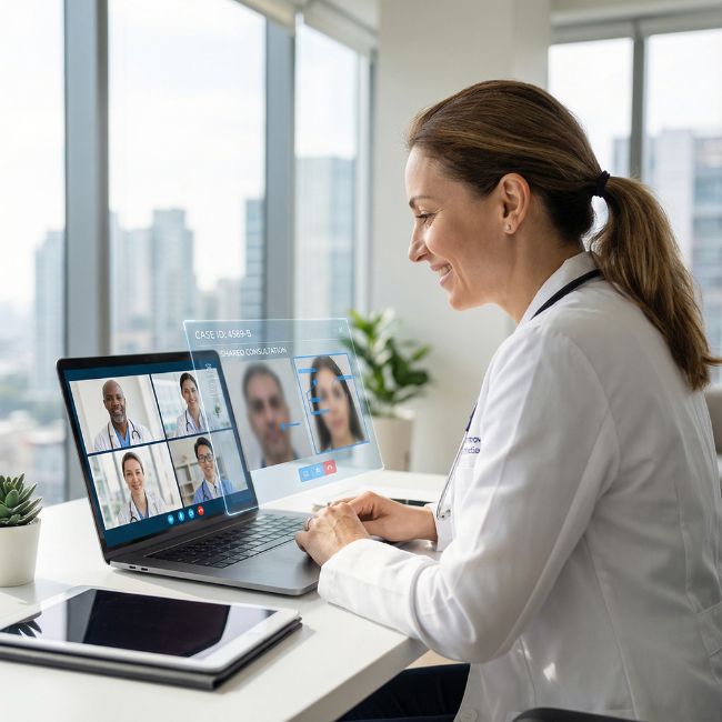 Doctors broadcast live professional lectures to a global audience with automatic translation into each viewer’s native language, knowledge flows across borders and cultures.